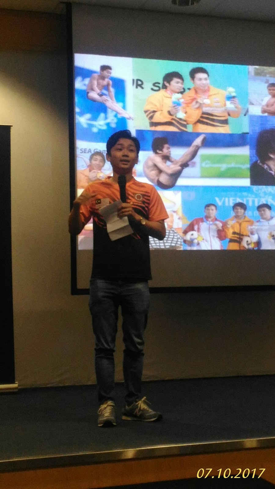 Atlet terjun negara bersemangat dalam menyampaikan ucapannya kepada para hadirin yang datang
